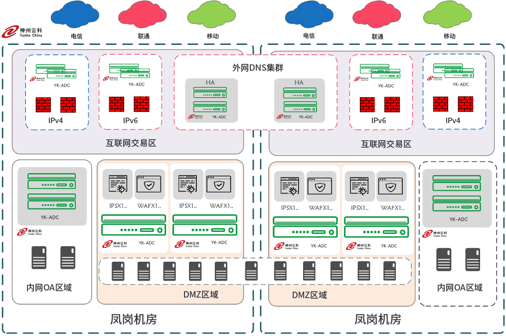 • 1、以EVO视讯官网应用交付体系为基础构建的新型交付型同城双活数据中心架构,保证数据中心高可用、灵活、便捷扩展、双中心双活